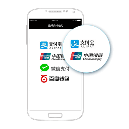 益泰支付平台,为iOS/Android原生/H5 App提供支付解决方案:支持微信支付、支付宝支付、银联手机支付、百度钱包等。
